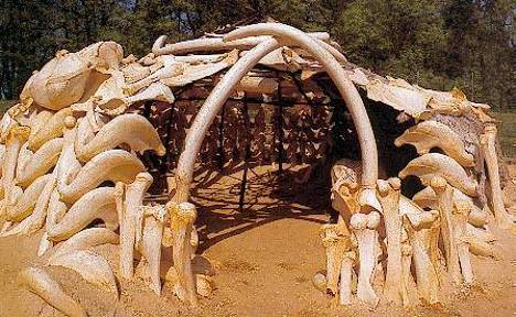 en slagtanden van een mammoet - nagemaakt. Gebaseerd op vondsten)